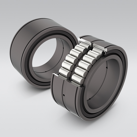 Double-row cylindrical roller bearings have high radial rigidity and are used primarily for the main shafts of precision machine tools. Cages are typically made of pressed steel or machined brass, but molded polyamide resin cages are used for some models.