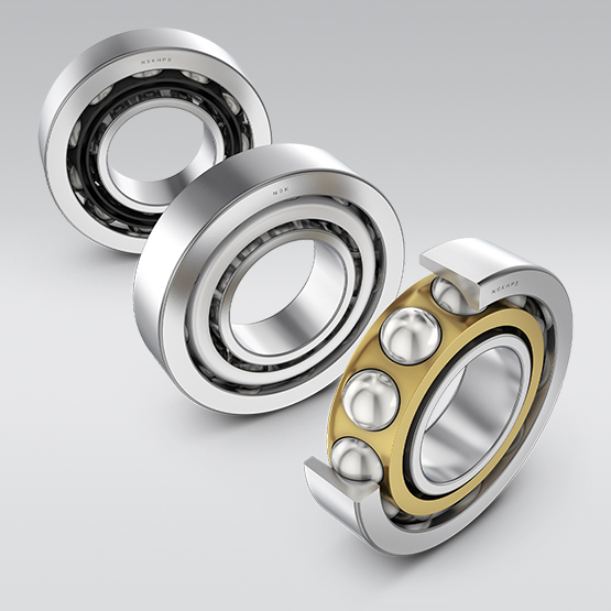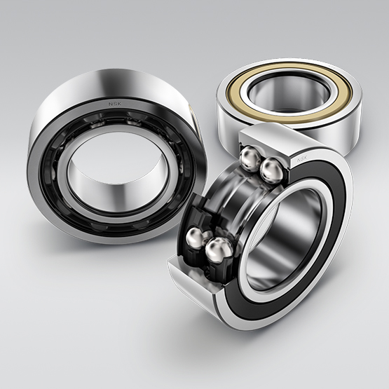 A gama NSK de rolamentos de esferas de contato angular inclui: rolamentos de esferas de contato angular de duas carreiras, rolamentos de esferas de contato de quatro pontos, rolamentos de esferas de contato angular de uma carreira, rolamentos de esferas de contato angular selados e rolamentos de esferas de contato angular duplex.