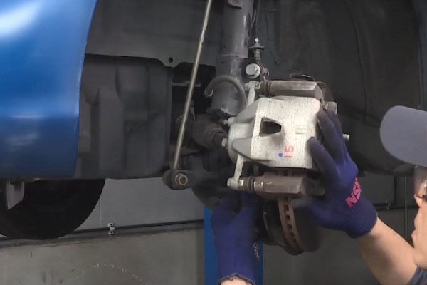 • Den Bremssattel vorsichtig außerhalb des Arbeitsbereichs aufhängen.