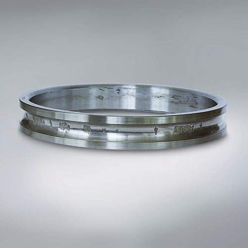 | El desconchado se produce cuando pequeñas partículas del material del rodamiento se separan de la superficie de la pista de rodadura o de los elementos rodantes debido a fatiga por rodadura, creando así regiones de textura áspera y vasta. |