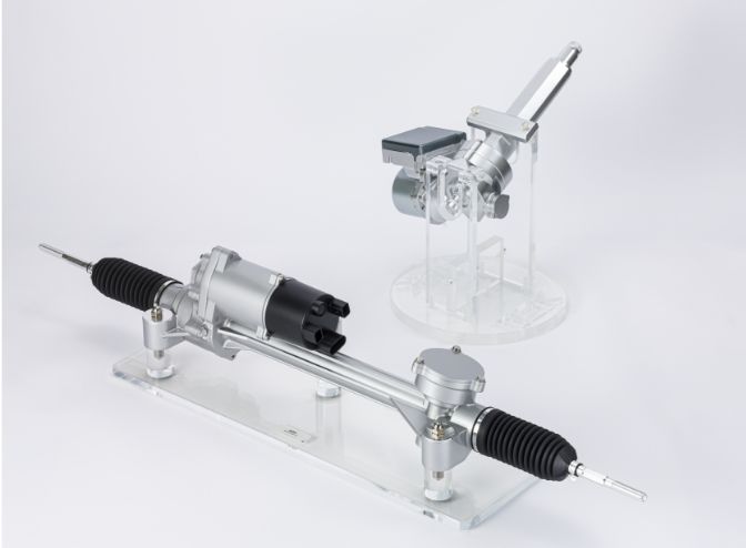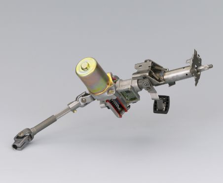 ステアバイワイヤ式ステアリングは、ハンドルとタイヤ間の一部を電気的に接続し、従来は難しかった安全性、快適性を向上する新たな機能を実現します。 これに不可欠な装置が、 開発中の操舵反力装置 (FFA)とタイヤ転舵装置 (RWA) です。 故障発生時でも機能継続性を確保した信号伝達制御も開発中です。