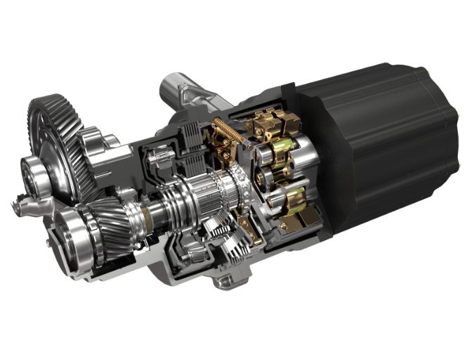 高速モータ及びトラクションドライブ減速機の組み合わせによる小型・軽量化、また磁歪式トルクセンサ及び電動シフトアクチュエータの組み合わせによる高機能な2速化を実現する電動駆動ユニットコンセプトです。 EVの課題である航続距離と走行性能を向上しつつ、快適な乗り心地や小型・軽量化にも貢献します。