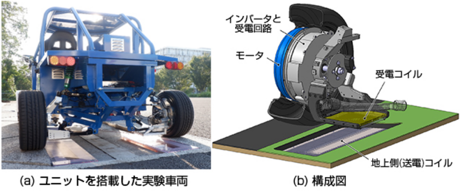 道路にコイルを埋め込み、走行中のEVを充電する「走行中ワイヤレス給電」という技術を開発しました。これは、道路に埋め込んだコイルから走行中のクルマに電気を送り、それでEVを走らせようというものです。この技術により、EVの電池の搭載を少なくでき、電池を作るための資源や、作るときに排出されるCO2排出量を削減できるというメリットがあります。