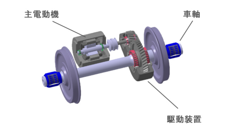 鉄道車両の車体を支え、走行するための台車という装置には、車体を支える車軸と、車軸に取り付けられている車輪を駆動させるための主電動機、駆動装置が搭載されています。NSKのベアリングは、台車を構成するこれらすべての部位で採用され、鉄道車両の安全に貢献しています。NSKの鉄道車両用ベアリングは日本国内の新幹線開発と共に成長してきました。高速回転への対応や、潤滑性向上など、これまで蓄積してきた技術力や知見を活用し、走行環境を考慮するなどした設計や開発・評価を進めてきたことで、現在では中国や韓国、ヨーロッパ、アジア圏など世界の多くの鉄道車両にベアリングを提供しています。