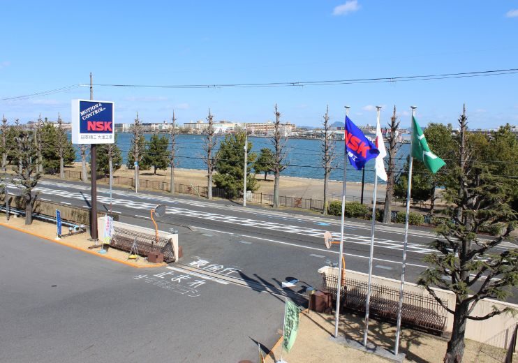 大津工場では、掃除機や洗濯機、エアコンなどの家電製品や、コピー機、プリンターをはじめとする情報機器などに使われるベアリングと、車のエンジンや電装に使われる自動車用ベアリングを生産しています。最寄駅から徒歩5分と工場には珍しいアクセスの良い拠点です。工場の目の前には琵琶湖が広がっており、風光明媚な景色を楽しめます。