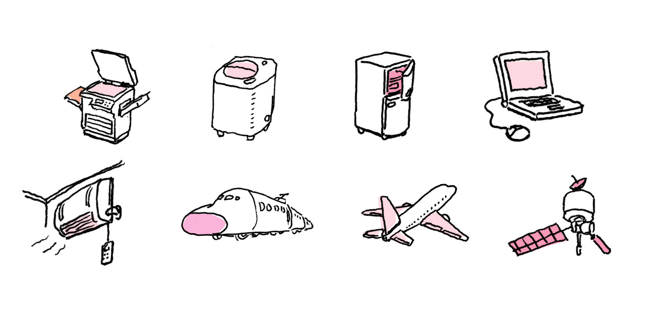 なぜかというと、ベアリングは家電や乗り物などのいろいろな機械 (きかい) の中に組み込まれているからです。