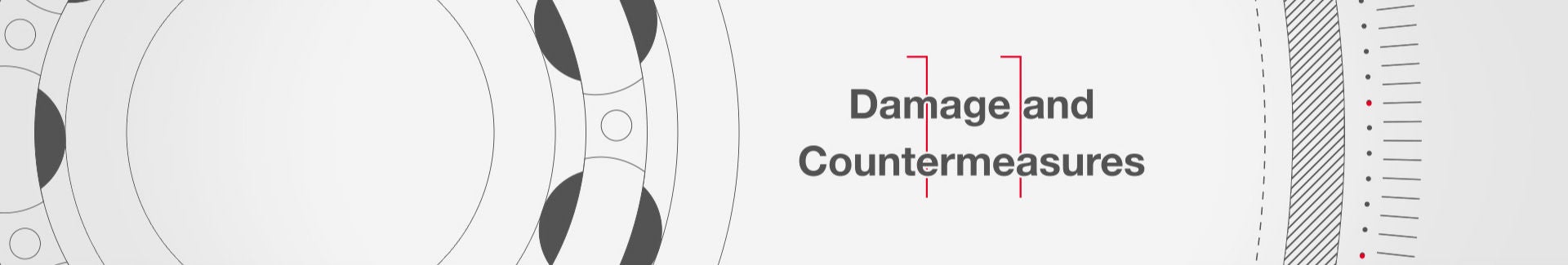 | Improper selection | Design or manufacturing error in shaft, housing, or surrounding parts | Improper lubrication method, type, or amount | Bearing flaws | Improper mounting | Entry of contaminants, moisture, or lubricant loss from faulty seals, wear, etc. | |